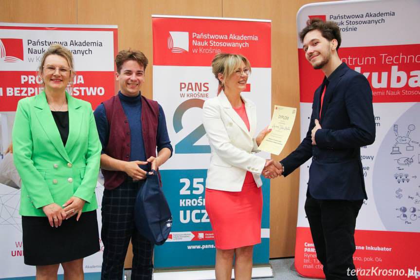 Wyróżnienie dla studentów kierunku lekarskiego PAM na Konferencji Studenckich Kół Naukowych 28 maja 2024 odbyła się w Krośnie VII Ogólnopolska Konferencja Studenckich Kół Naukowych, której tematem przewodnim były „Badania, innowacje i pasje młodego naukowca”. Organizatorem spotkania była Państwowa Akademia Nauk Stosowanych w Krośnie. Celem konferencji była „wymiana wiedzy i doświadczeń zdobytych podczas wielostronnych badań prowadzonych przez studentów w różnych dziedzinach nauki, jak również kreowanie inicjatyw w zakresie poszukiwania innowacyjnych rozwiązań mających na celu wsparcie gospodarki i przemysłu”. Zgłoszone referaty podzielono na dwa panele, konferencja odbyła się stacjonarnie oraz w formie hybrydowej. Studenci reprezentujący różne koła naukowe, z różnych uczelni wyższych zaprezentowali 47 referatów. W konferencji wzięli udział dwaj studenci pierwszego roku kierunku lekarskiego naszej uczelni – pan Szymon Jęśko-Białek i pan Sambor Hełka, którzy są członkami Studenckiego Koła Naukowego Fizjom przy PAM. Panowie Szymon i Sambor są współautorami obu zaprezentowanych podczas wydarzenia referatów: − Związek osoczowego stężenia salusyny alfa z wybranymi parametrami antropometrycznymi – Sambor Hełka, Szymon Jęśko-Białek − Wpływ prozdrowotnego stylu życia na osoczowe stężenie rozpuszczalnego receptora dla końcowych produktów zaawansowanej glikacji (sRAGE) u chorych hemodializowanych – Szymon Jęśko-Białek, Sambor Hełka Za referat Wpływ prozdrowotnego stylu życia na osoczowe stężenie rozpuszczalnego receptora… autorzy otrzymali wyróżnienie. Opiekunem Studenckiego Koła Naukowego Fizjom jest dr n. med. Leszek Niepolski. Serdecznie gratulujemy!